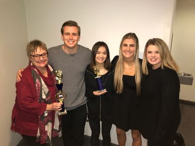 Speak UP! was developed by Santa Margarita Catholic High School IB Theatre students Raiya Browning, Hannah Billups, Hannah Loessberg and Griffin Webb in 2017. The playwrights performed the play in 2017 for the Free-Style event at the International Thespian Festival at the University of Nebraska, Lincoln under the original title Semicolon. Original cast and crew pictured left to right: Amy Luskey-Barth, Artistic Director, Hannah Loessberg as Catherine, Griffin Webb as Gordon, Cameron Farmer, Student Director, Hannah Billups as Gwen, Raiya Browning as Reese, KC King as Stage Manager and Tania Ayoub Instructor.